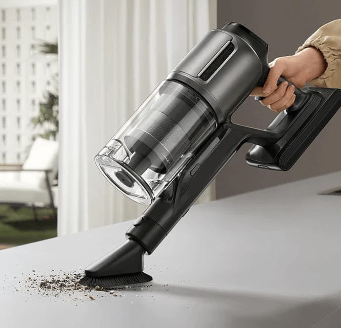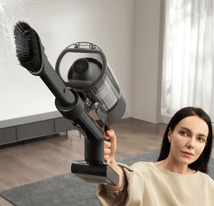 Aspire sans effort la poussière sur les bureaux, fenêtres et portes, pour un nettoyage rapide, précis et sans trace, même autour des objets fragiles.