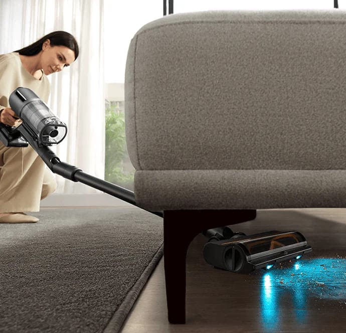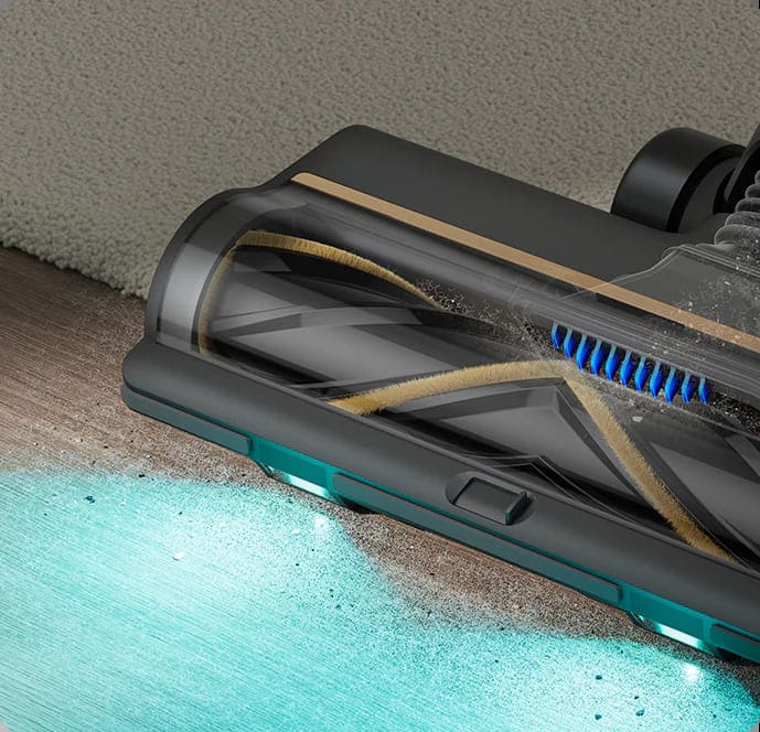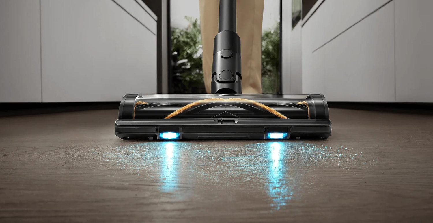Grâce à son design affiné et sa lumière intégrée, ce rouleau-brosse nettoie efficacement jusqu'aux plinthes et dans les moindres recoins. Avec seulement 7 mm d’écart entre la brosse et le mur, la saleté le long des bords ne lui échappe plus.