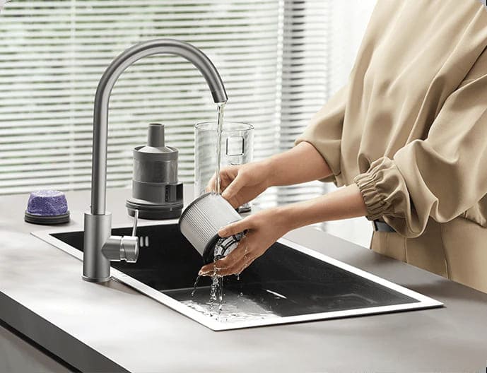 Filtres et bac à poussière entièrement lavables à l’eau pour un entretien simplifié et une hygiène optimale au quotidien.