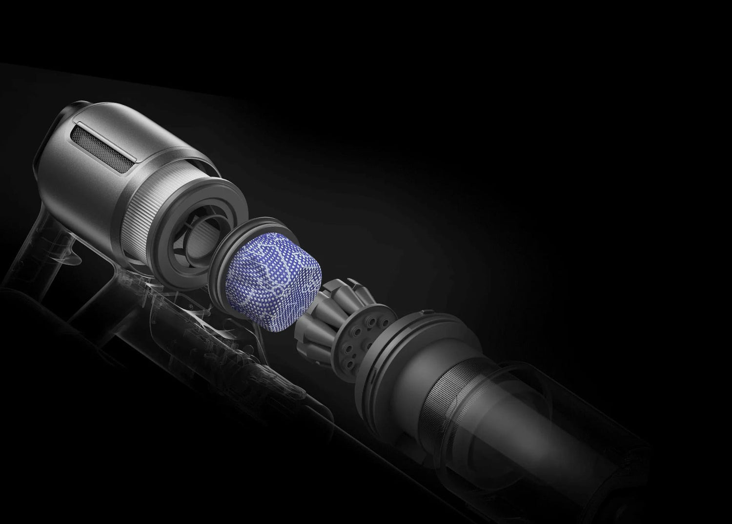 L’aspirateur PowerMax est équipé d’un système de filtration multicouche capable de capturer les particules fines dès 0,1 micron. Ce dispositif retient jusqu’à 99,99 % des poussières et 99,9 % des bactéries et virus, assurant un air plus pur à chaque passage.