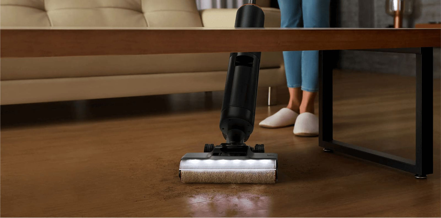 Grâce à sa lumière LED intégrée à l’avant de la brosse, l’appareil éclaire efficacement les recoins sombres de votre maison : sous les canapés, lits, meubles bas…