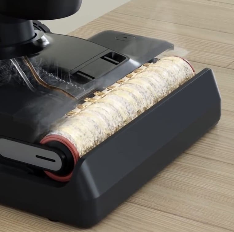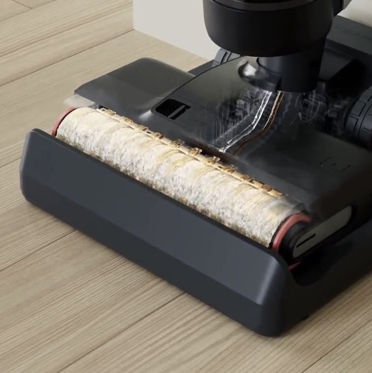 La brosse se nettoie automatiquement à l’eau chaude à 60 °C. Il vous suffit de replacer l’aspirateur sur sa station de recharge : la brosse y effectue un lavage thermique complet après chaque utilisation.