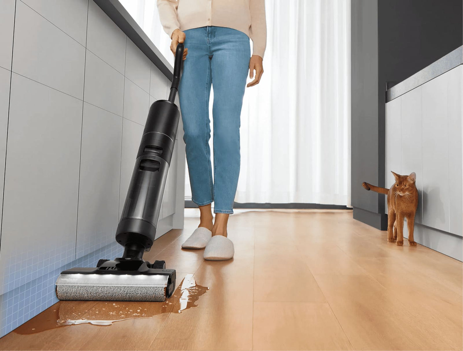 Elle peut ainsi atteindre facilement les plinthes, les angles et les zones difficiles d’accès pour éliminer efficacement taches, éclaboussures et saletés incrustées.