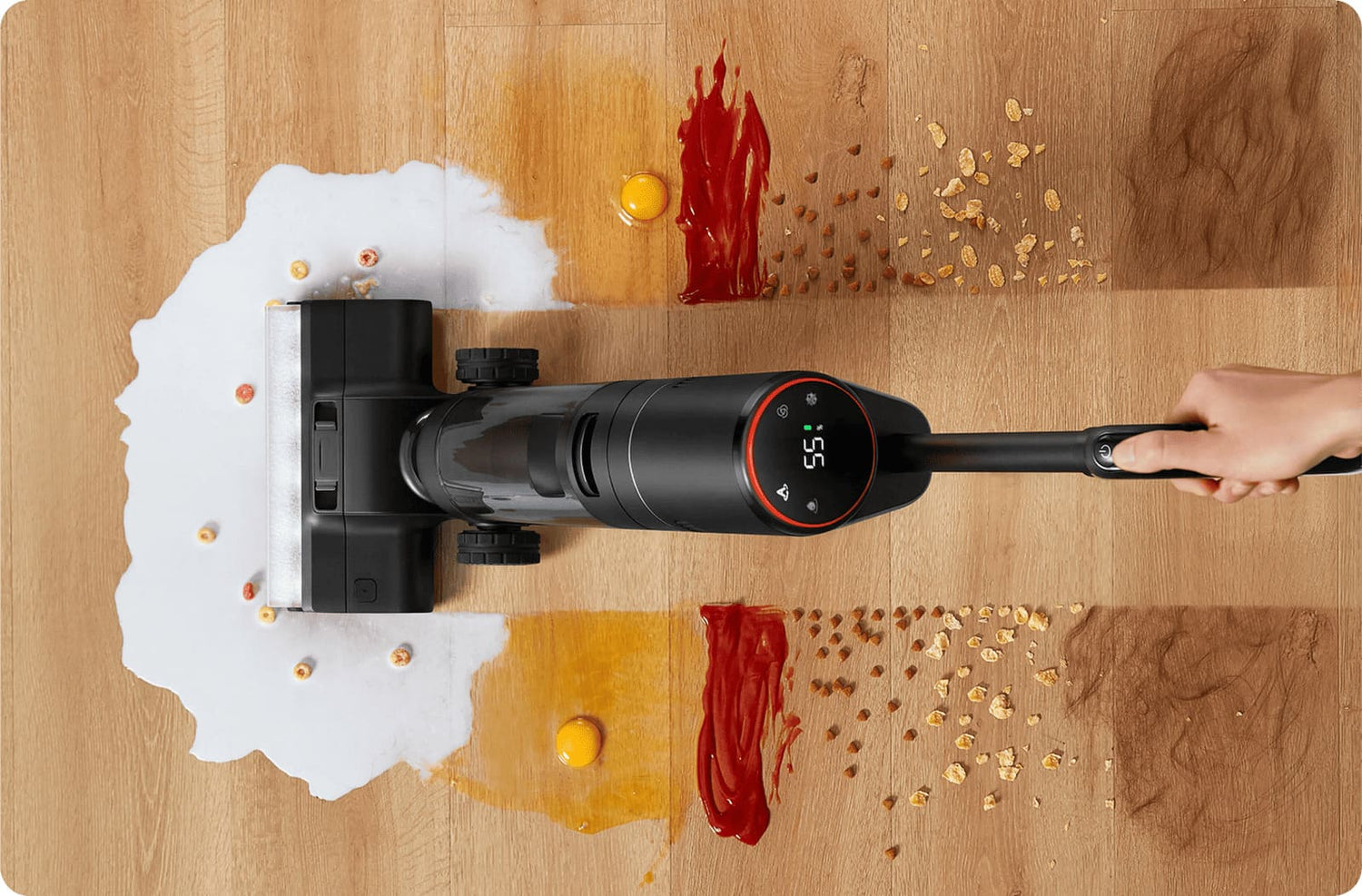 Oui, il aspire, lave et sèche vos sols en un seul passage. Sa brosse rotative double action permet un nettoyage simultané des liquides et des saletés solides.